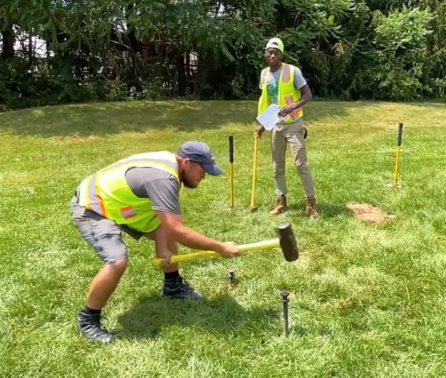 - Tent Staking: Drive a stake its full length into the grass using a sledgehammer